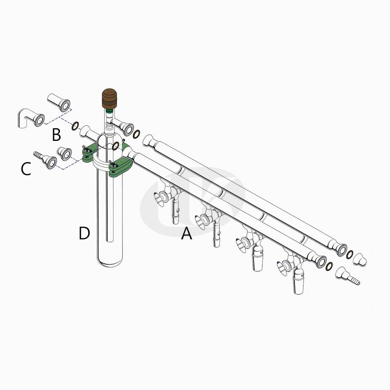 - A : 4 mm Solid Double Oblique High Vacuum Stopcock