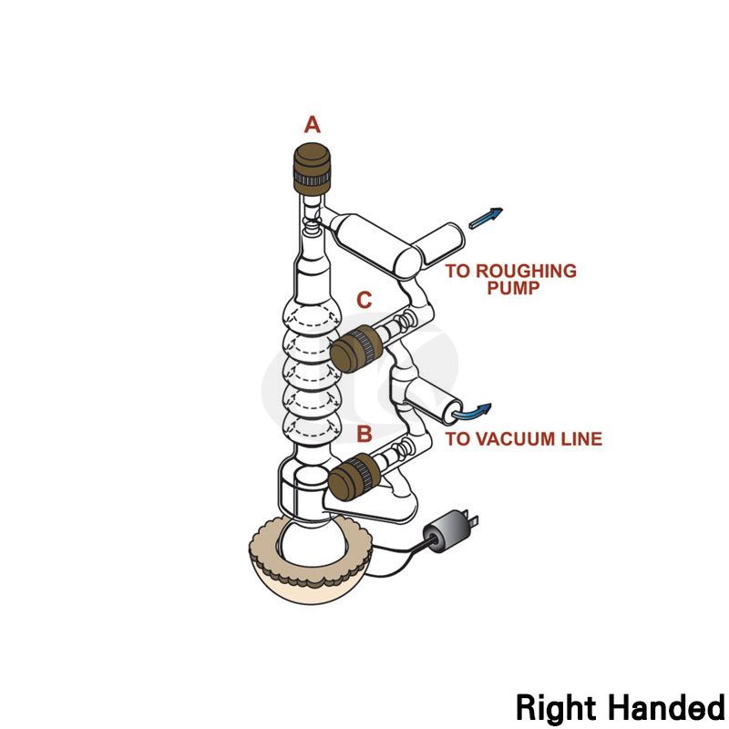 - Once the system has reached 1×10-5Torr, valve C is closed and A and B are opened, restoring the diffusion pump to the pumping circuit